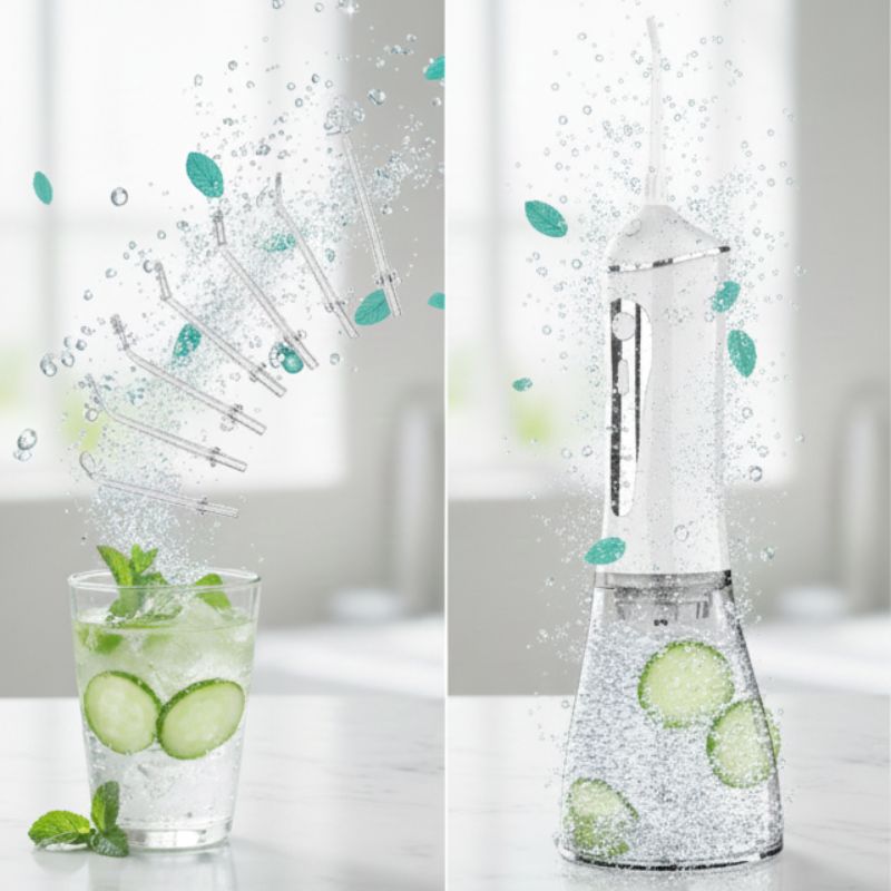 Le jet dentaire nettoie aussi la langue, assurant une hygiène bucco-dentaire complète et une haleine fraîche durable.